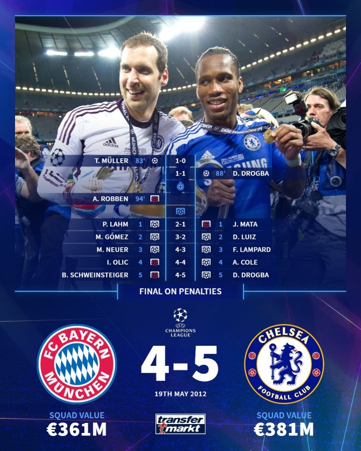 今夜谁将取胜?德转回顾12年欧冠决赛双方阵容,切尔西安联夺冠